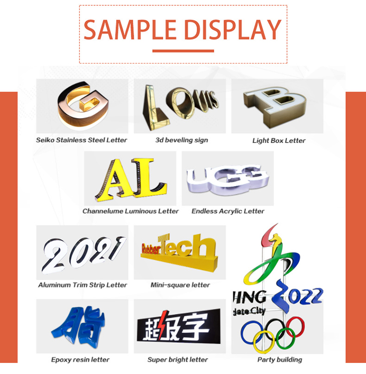 Seiko Stainless Steel Letters/Epoxy Letters/Endless Acrylic Letters/Light Box Letters/Party Building/3d Beveled Signs/Mini Square Letters/Super Bright Letters/Aluminum Trim Letters/Channelume Luminous Letters |