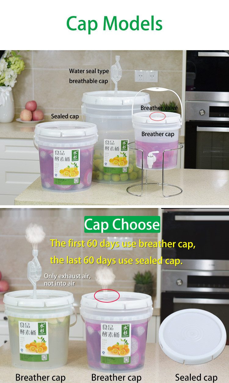 Automatic Fermentation Barrel Venting Household Fruit Beer Enzyme Container with 2 Lids Plastic Fermentation Tank