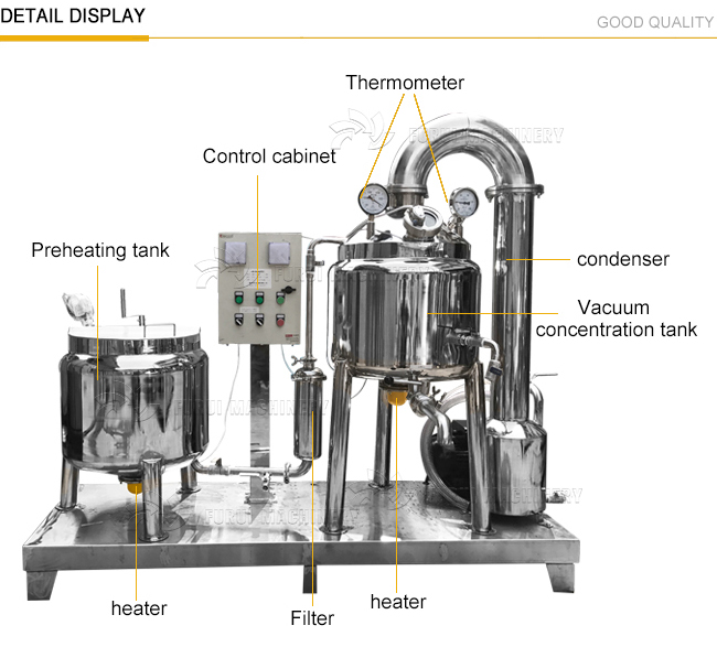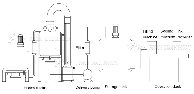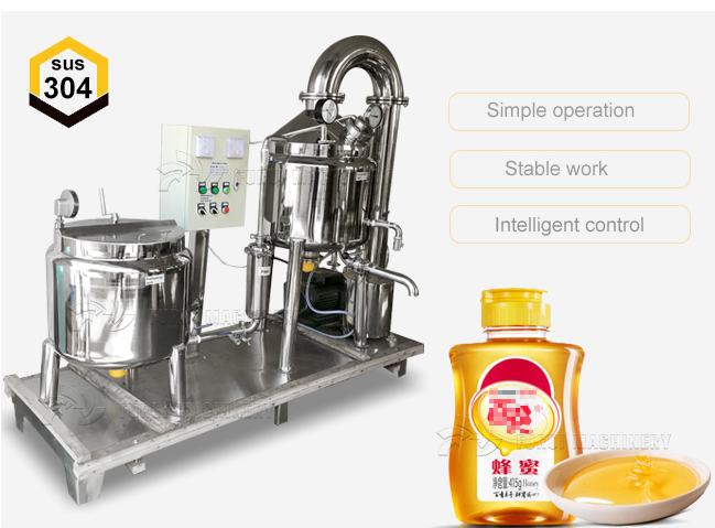 honey thickener machines using in high vacuum state reduce the boiling point of water principle, make honey quickly evaporate out the water, improve the concentration of honey. Equipment also melting with crystallization, filtration sterilization, concentration, and other functions, make honey meet the national standards, and can long-term preservation.