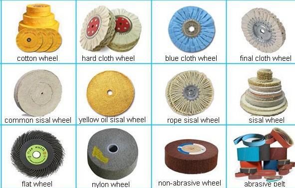 Usually sisal/hemp wheels with purple polish; hard cloth wheels with green polish; soft cloth wheels with white polish