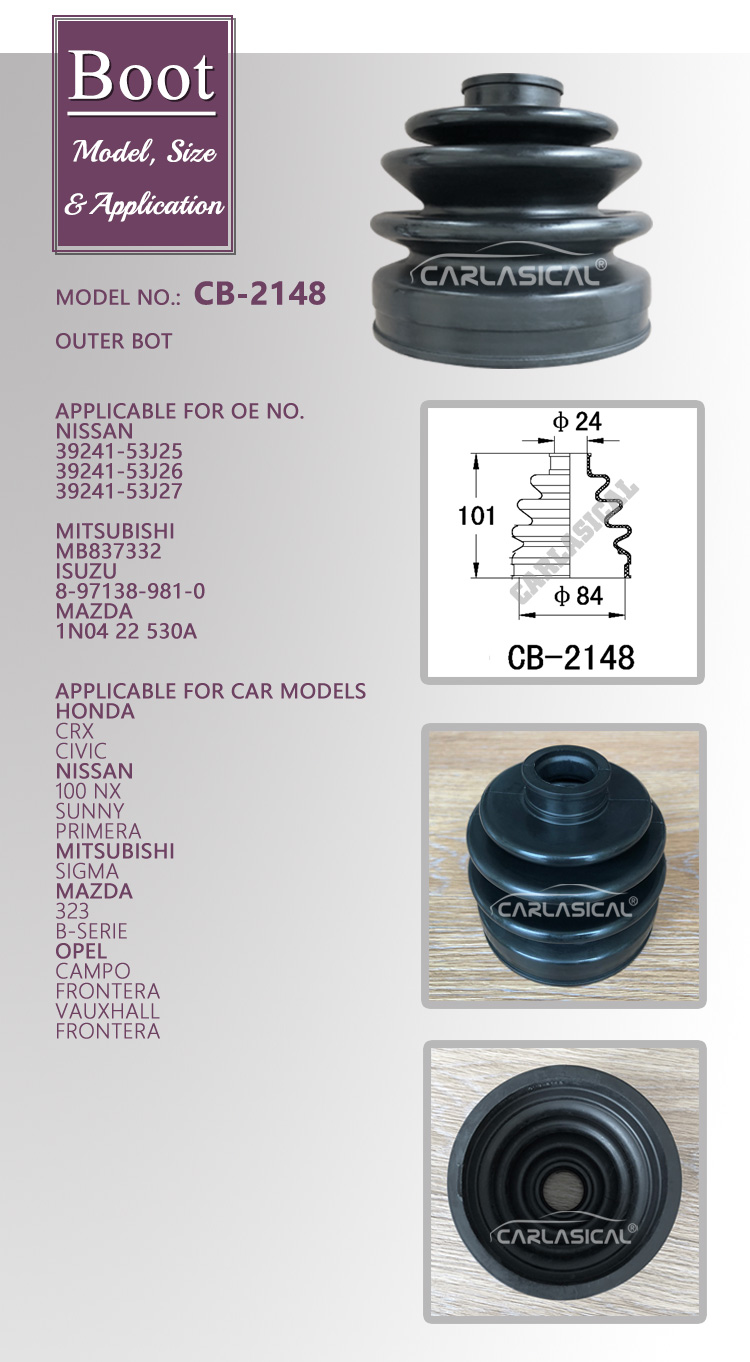 Automotive Rubber Parts Transmission Shaft Constant Velocity Universal Joint Rubber Boot No. FB-2148 Outer Dust Boot OE No.39241-53J25