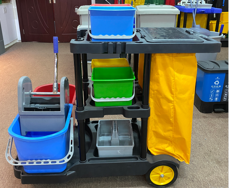 | Optional: | cover + handle | product name: | plastic cleaning cart |
