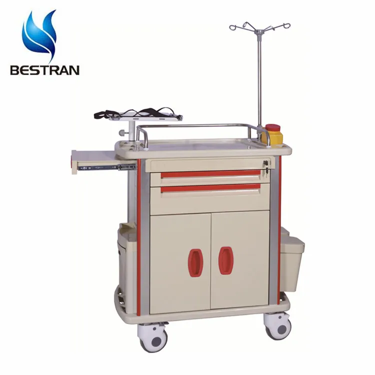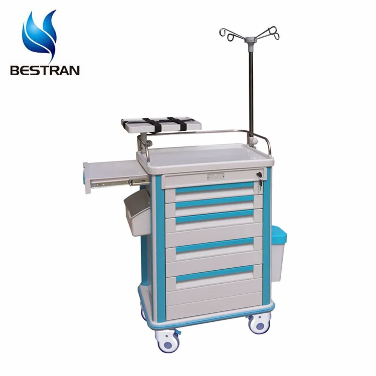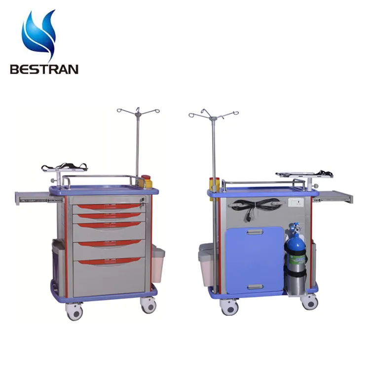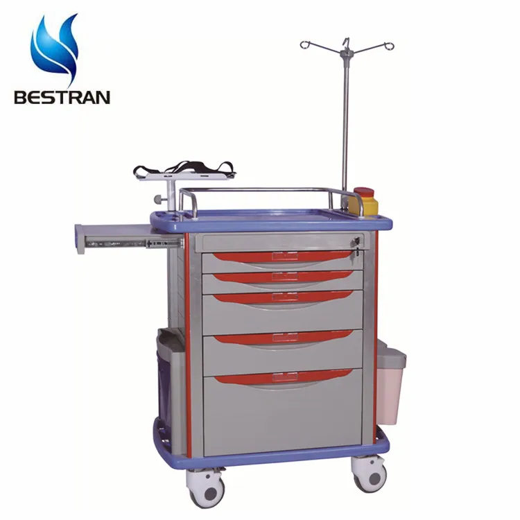 BT-EY005 Cheap price ABS plastic medical emergency resuscitation trolley, clinical medicine treatment cart with drawers wheels