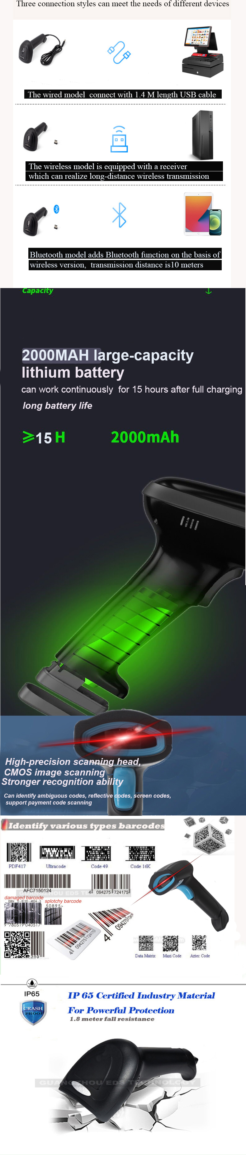 BT Wireless Barcode Scanner 1D 2D Scanner QR Code Scanning for Supermarket 2D Scanner