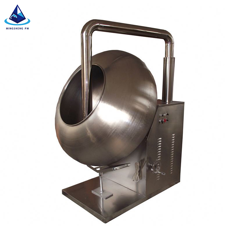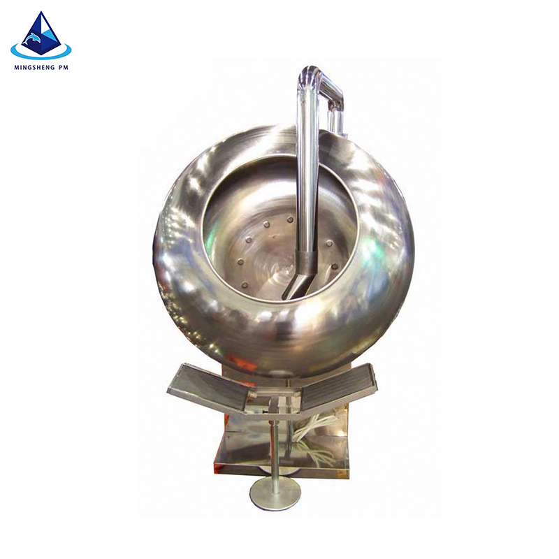 This machine is suitable for sugar coating and coating of pills in the pharmaceutical and food industries, and can also be used for stir-frying beans to promote the ripening of fruits. Its characteristic is that the sugar-coating pan is horizontally inclined upwards at 30°, and direct heaters such as electric heating and gas can be installed under the pan. This machine is equipped with an independent electric fan, which can lead the air outlet pipe into the pot for heating or cooling, with two levels of firepower adjustment.