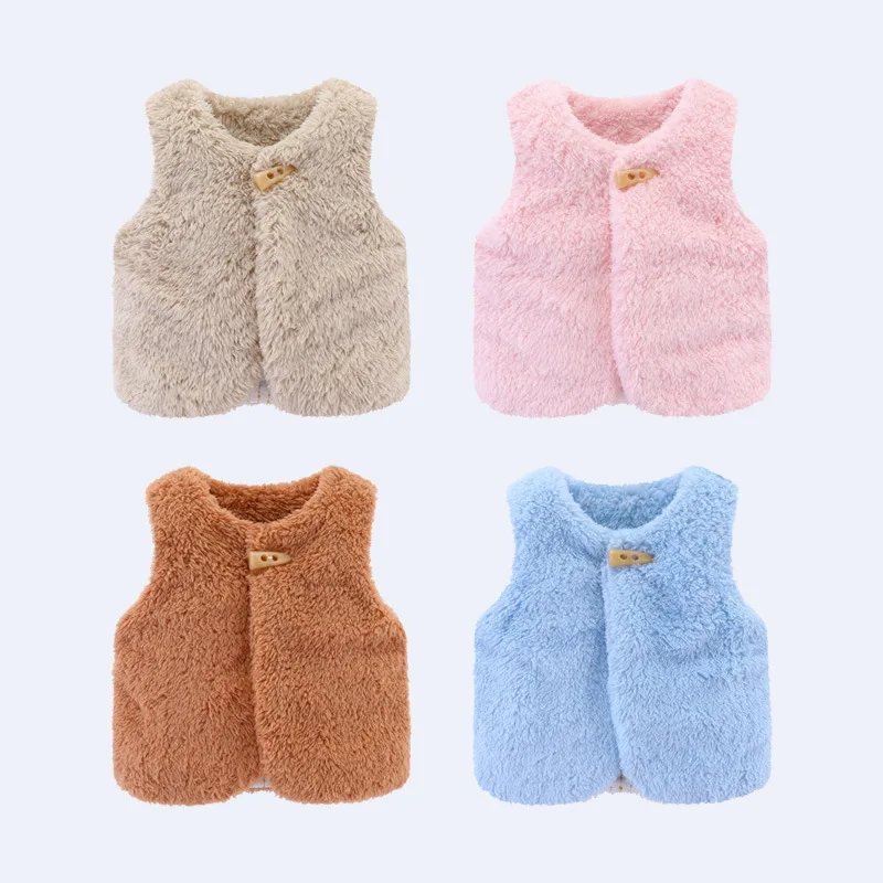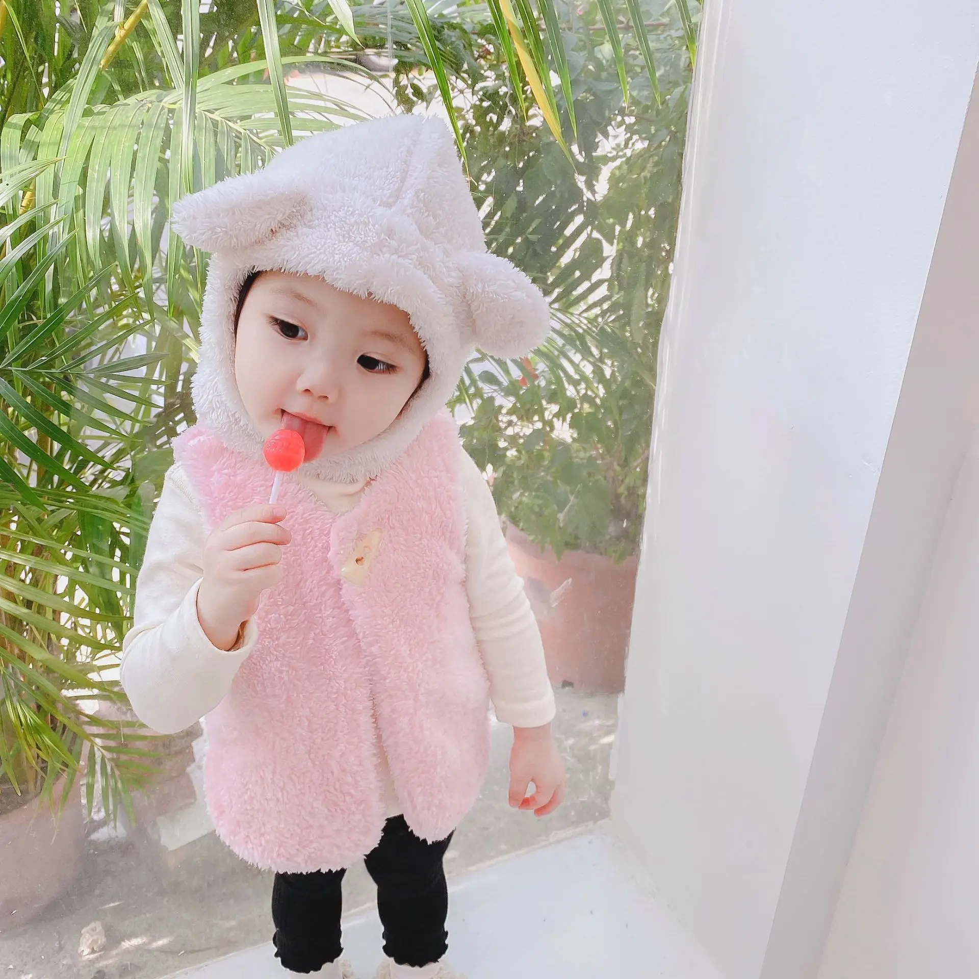 Baby Girl Vests Winter Warm Fleece Thicken Solid Color Soft Lovely Customize Pattern 1-3 Years Baby Vest For Girl