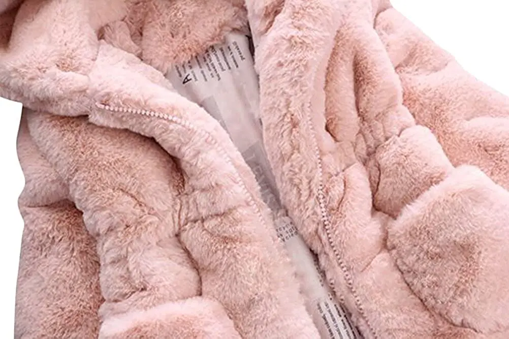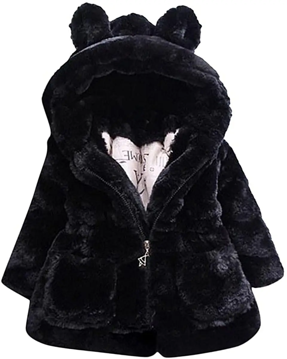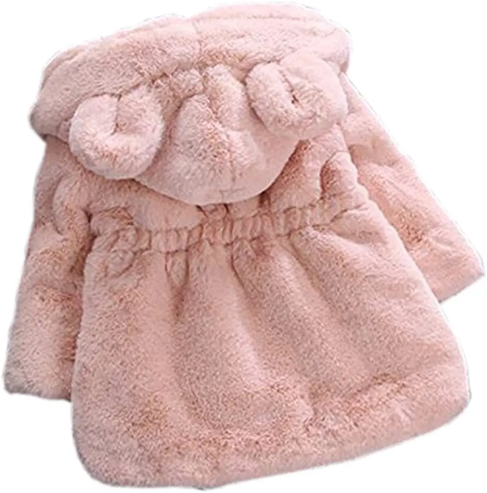 Baby Little Girls Winter Fleece Coat Kids Faux Fur Jacket with Hood Thicken Outwear Warm Overcoat