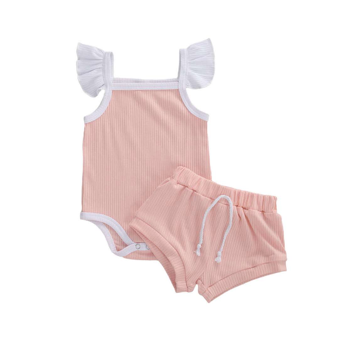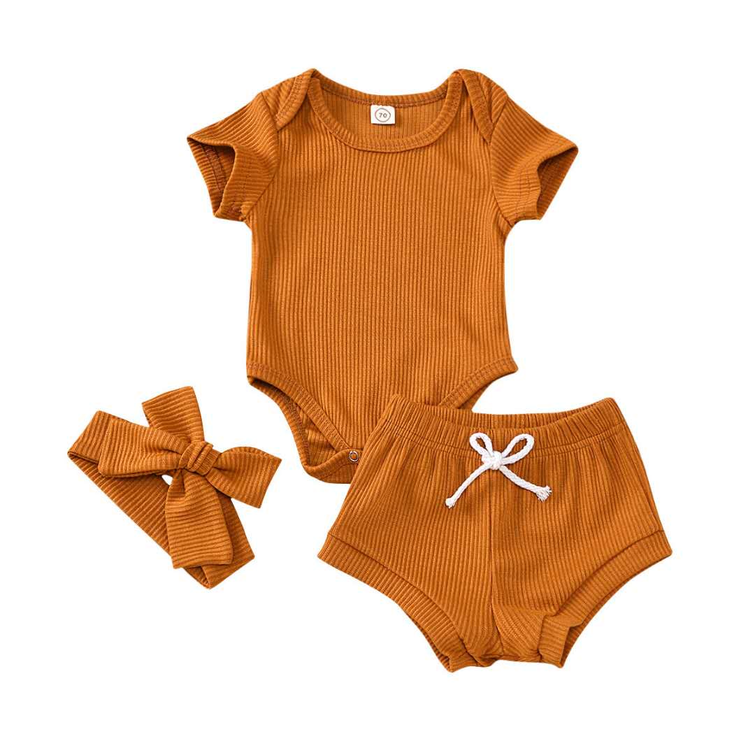 Baby Ribbed Baby kids Bodysuits Drawstring Short Baby Clothes