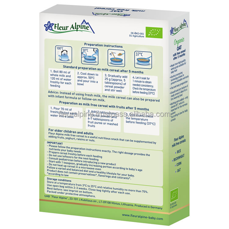 Baby cereal food natural oats for babies from 4 months premium quality EU certified product natural baby cereals for sale