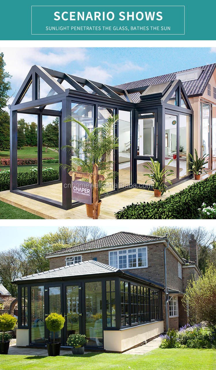 | Packaging Detail: | wooden case or customized as you require Backyard Garden Green House Aluminium Roof Veranda Sunrooms Glass Houses; | Feature: | Glass,Tempered Glass,Waterproof; |