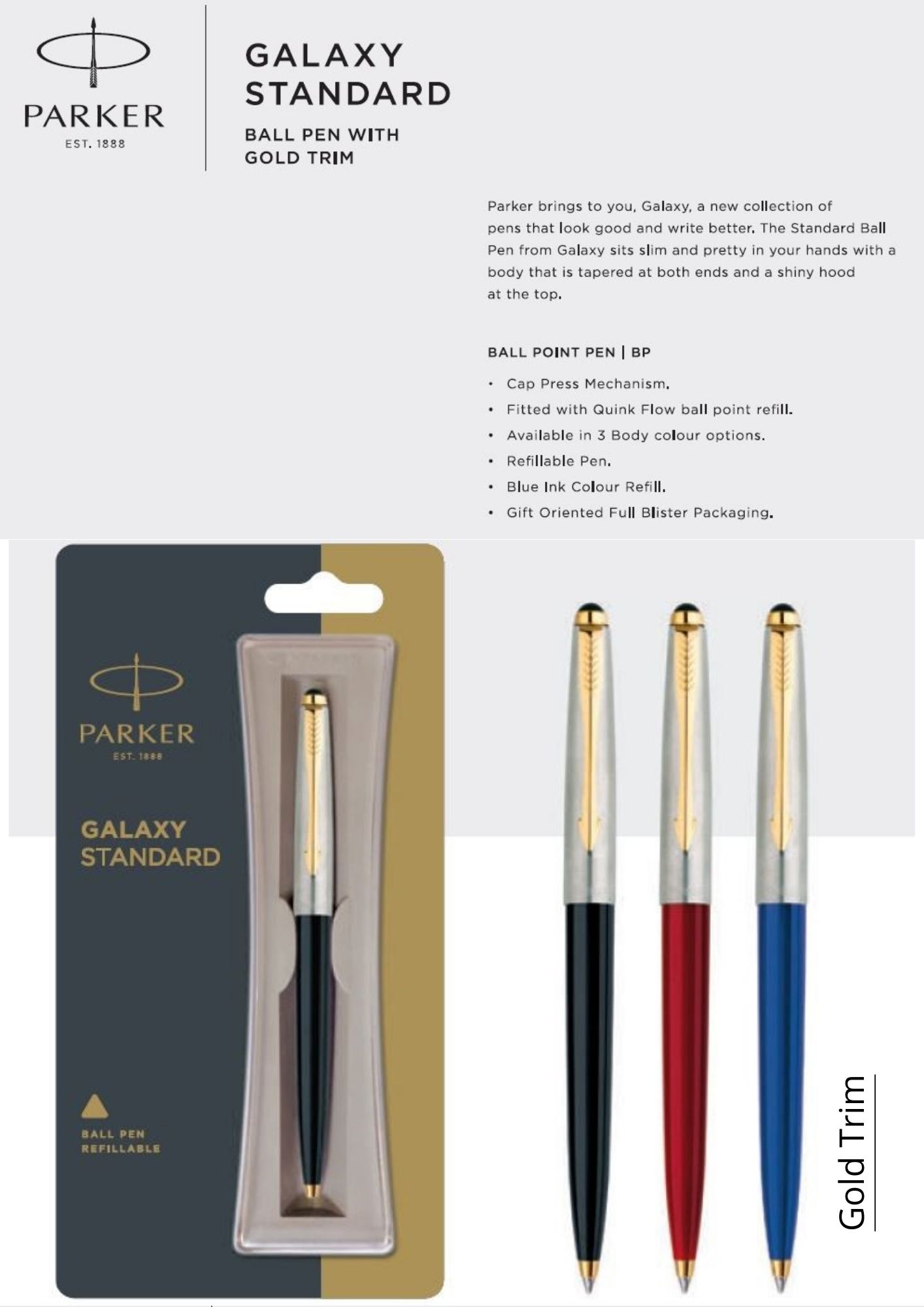 Ballpoint Pen Parker Galaxy Standard Stainless Steel Gold Trim Black/Blue/Red Barrel Premium Parker Ballpoint Pen