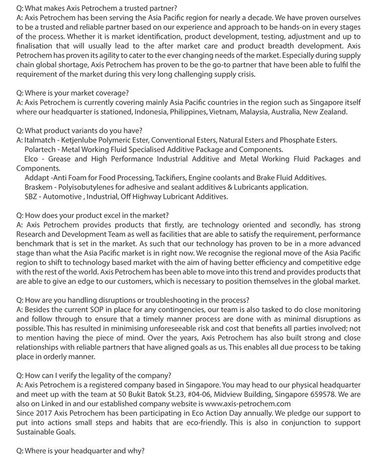 | payment terms: | Wire Transfer/Letter of Credit | application: | Automotive and industrial lubricants. |