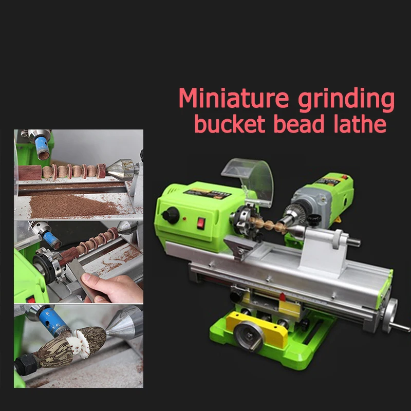 Beads Machine Small DIY Woodworking Mini Lathe Bench Drill Miniature Grinding Bucket Bead Lathe