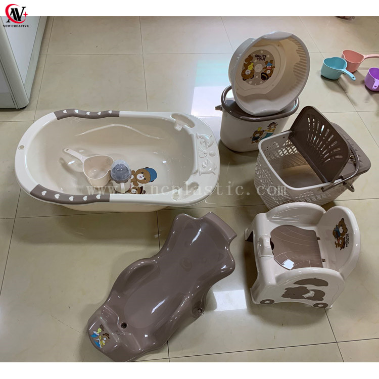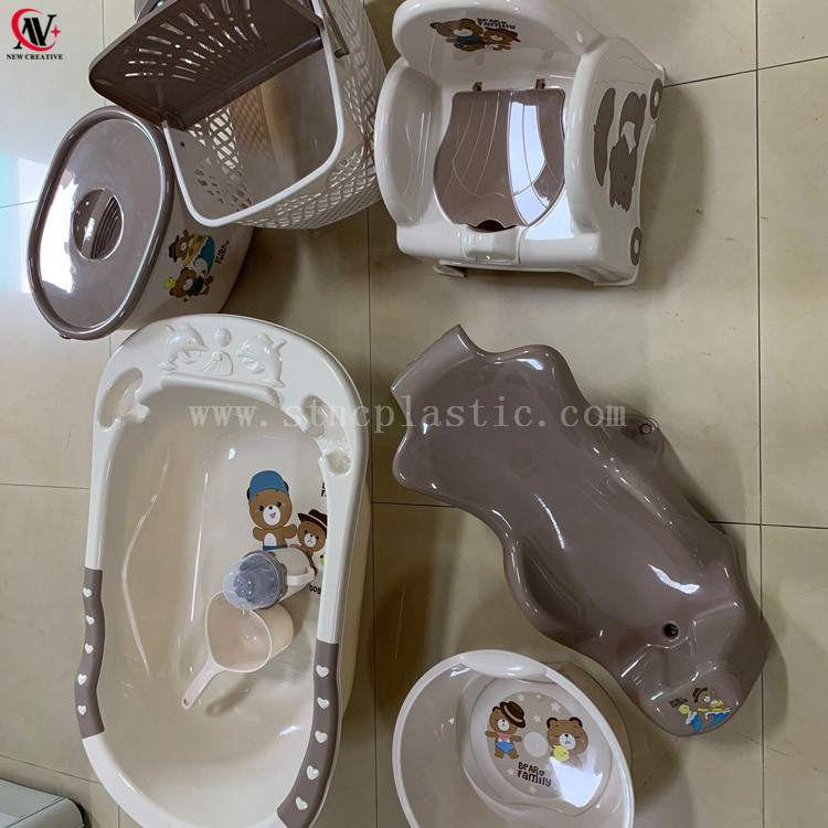 Bear Oval Bucket Squeeze Spoon Baby Potty Bath Rack Plastic Basket BABY BATHUB SET-8PCS