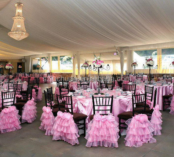 Product Name:Beautiful Chairs Covers for Dining Room Pink Cheap Wedding Chair Covers Organza Ruffles Chair Covers for Events