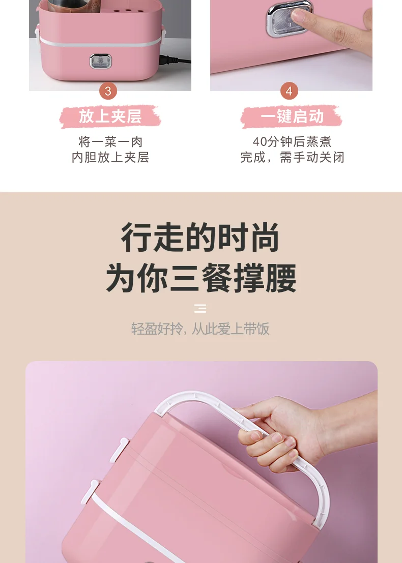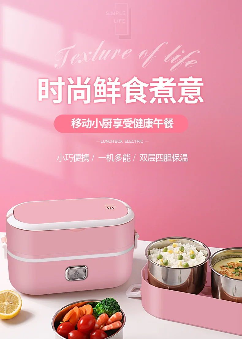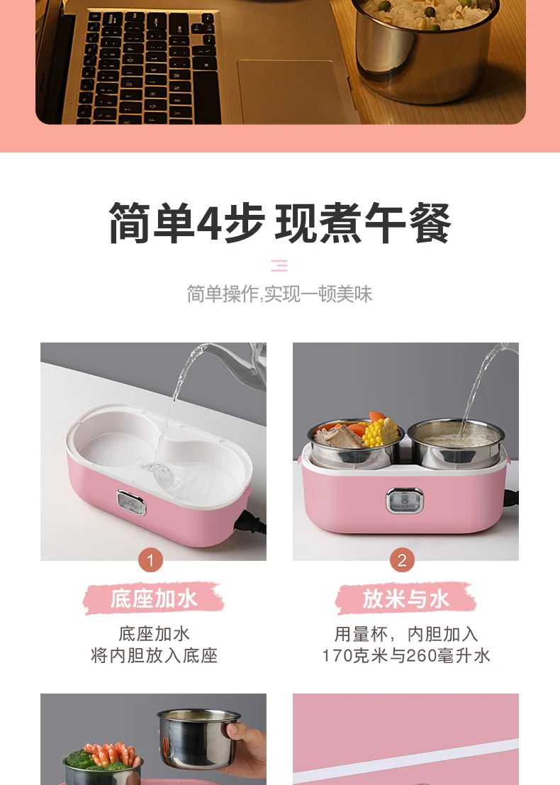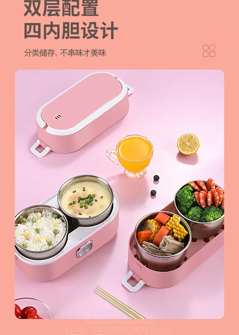 Bento Food Container Stainless Steel Cooking Lunch Box Heating Appliance Multifunctional Portable Electric Cooking Lunch Box