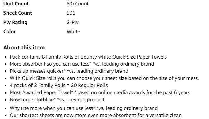 Best Quality Bounty Great Deals Genuine Size 2-Ply Tissue Paper Towels White 8 Rolls Factory Sealed