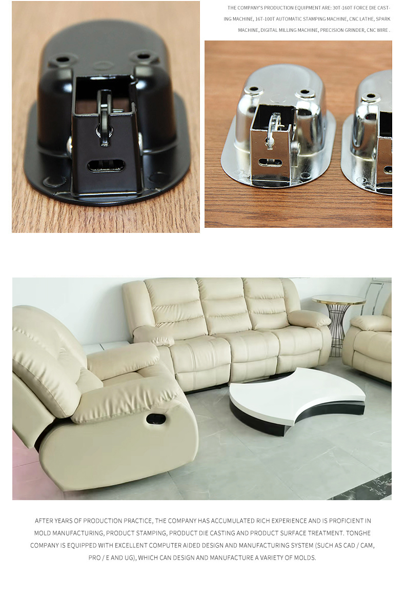 The company's production equipment includes: 30T-160T Lijin die-casting machine, 16T-100T automatic punching machine, CNC lathe, spark machine, digital display milling machine, precision grinding machine, CNC wire cutting machine, drilling machine, hydraulic stretching machine, semi-finished product processing center, etc. After years of production practice, the company has accumulated rich experience and is proficient in mold manufacturing, product stamping, product die-casting, and product surface treatment. At the same time, the company is equipped with advanced computer-aided design and manufacturing systems (such as CAD/CAM, PRO/E and UG, etc.), which can design and manufacture various molds.