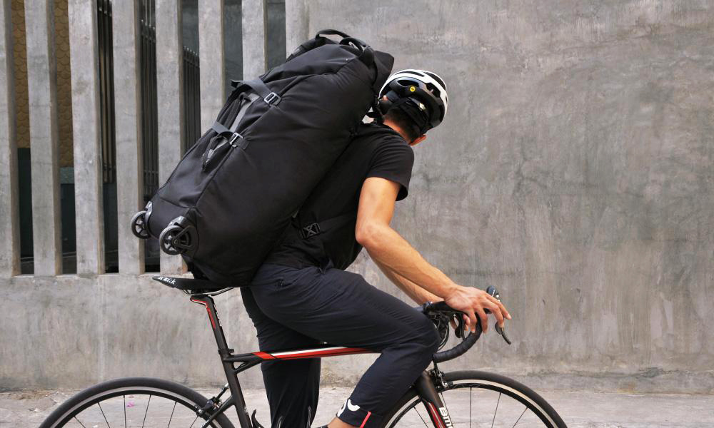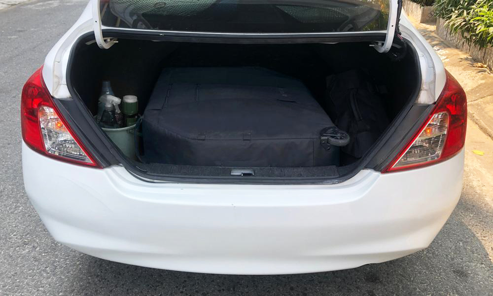reach anywhere Being as compact as possible, rolling the transfer bag through narrow streets is a breeze using its external wheels, and you can even carry it on your back using the integrated shoulder strap. The transfer case itself weighs less than 6kg, making it the lightest and most compact yet still highly protective bike case available. Once you arrive at your hotel or accommodation, you can easily carry it upstairs using its sturdy handles. | Fits any vehicle The transfer bag fits perfectly in the trunk of a small car. Or even install multiple transfer cases on the same vehicle! no longer Negotiate with taxi drivers who are unwilling to deal with a larger case or try to find a larger car for your bike. |