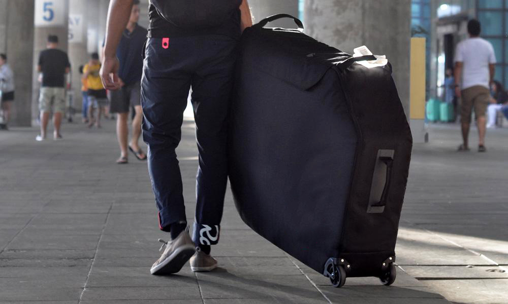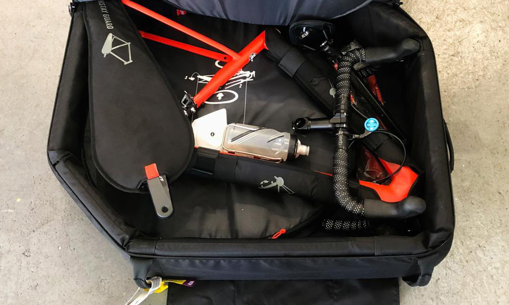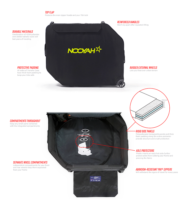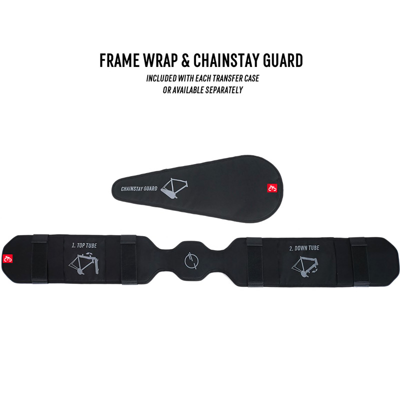 Compact and protected The transfer bag features hard polycarbonate plastic panels and thick foam padding. The included padded frame wrap and chainstay guards add another layer of protection. These wraps keep your bike scratch-free and completely eliminate the need to clean up foam and tape to protect your bike. Just pack and go! | Save on travel expenses Packing the bike into the smallest possible footprint means the overall size of the transfer bag is only slightly larger than a regular suitcase. Some airline counter agents will check it in as regular checked baggage so you can avoid the airline fees typically charged for larger bike boxes. While we do not guarantee avoidance of airline fees, transfer packages have a proven track record of avoiding or reducing any fees. |