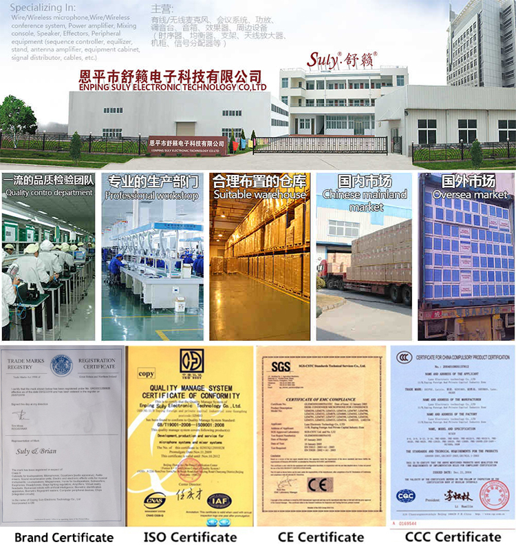 We are committed to the production, sales and export of various electroacoustic equipment, including wired/wireless microphones, wired/wireless conference systems, power amplifiers, mixing consoles, speakers, effects, peripheral equipment (sequence controllers, equalizers, stands, Antenna amplifiers, equipment cabinets, signal splitters, cables, etc.). Our company covers a total area of more than 15,000 square meters. We have more than 100 sets of internationally advanced production equipment and 150 workers.