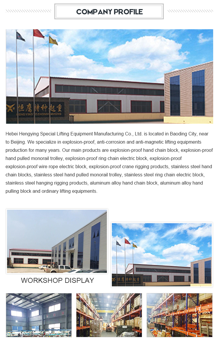 A: We are a manufacturer with 20 years of experience. Our main products: explosion-proof/non-sparking chain hoists, stainless steel