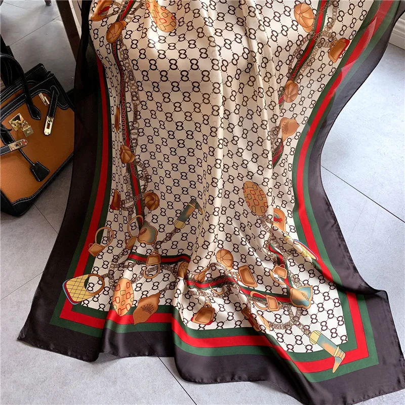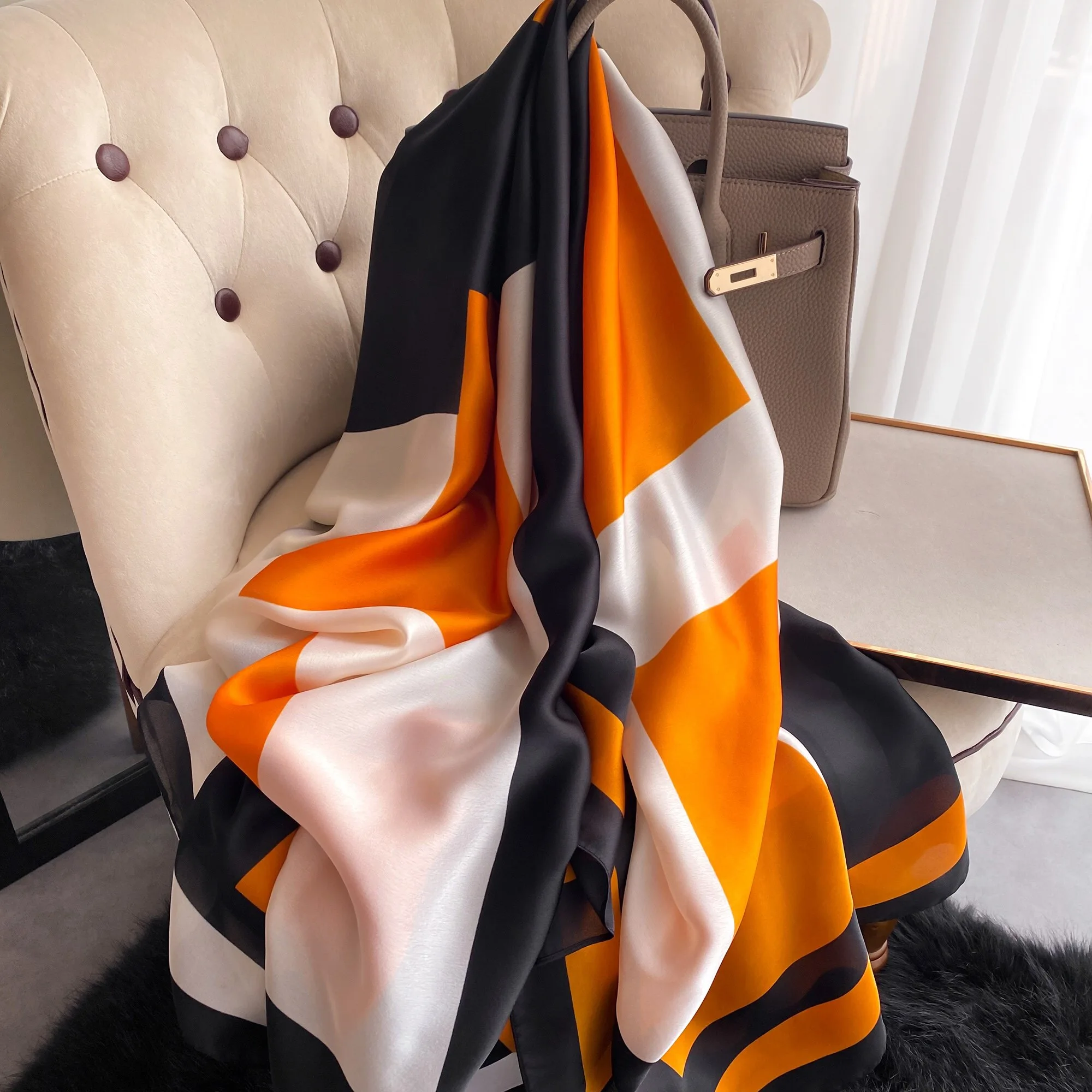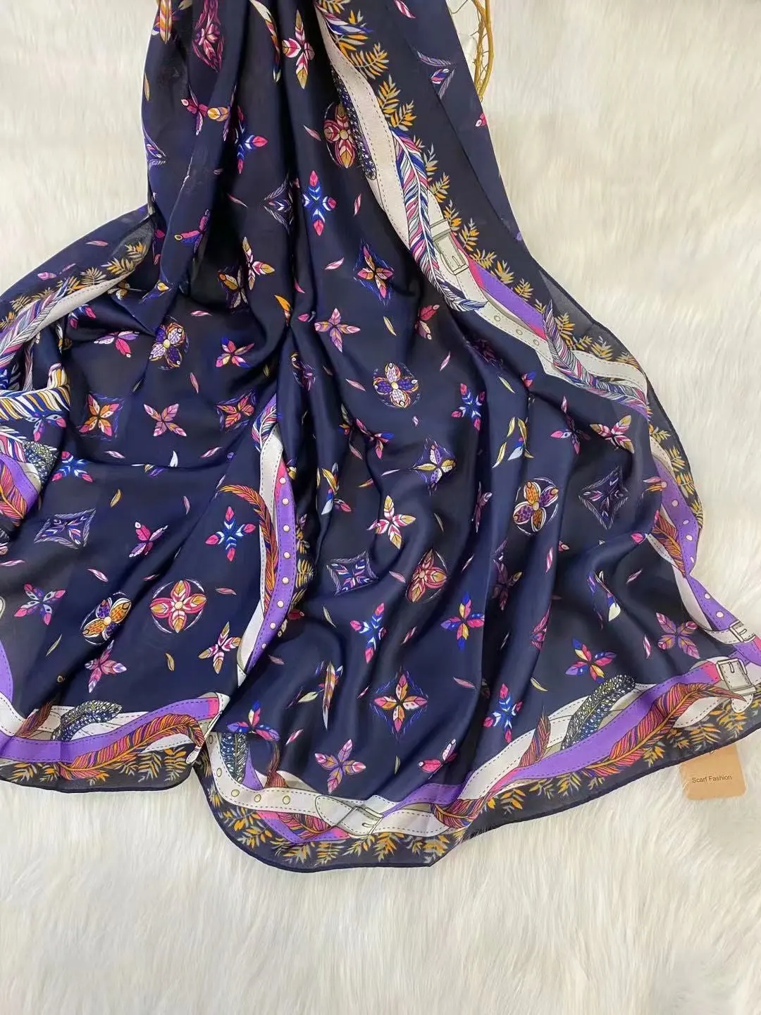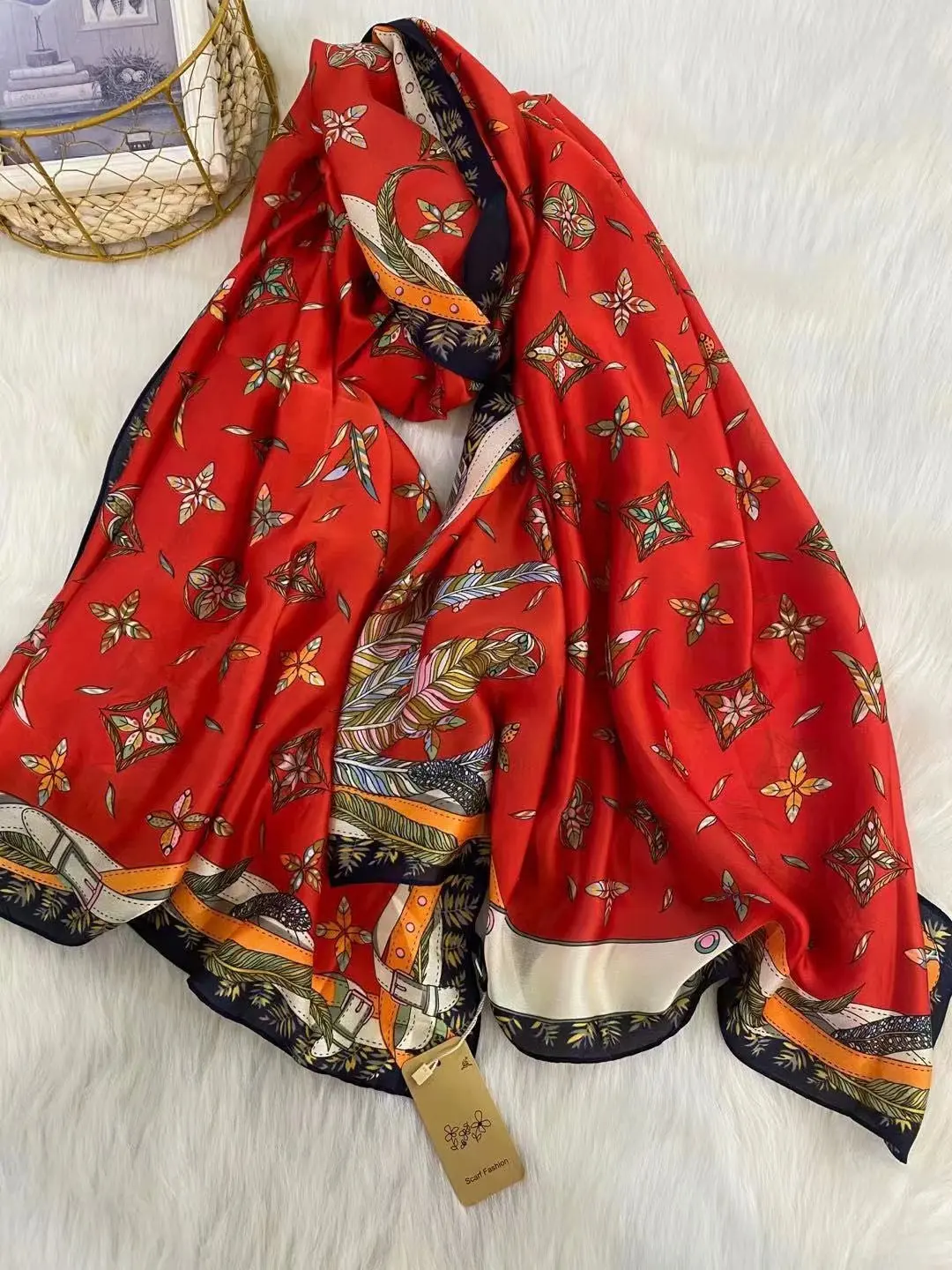 Polyester silk feeling scarfs can be used as shawl, indoor room, sea side.....