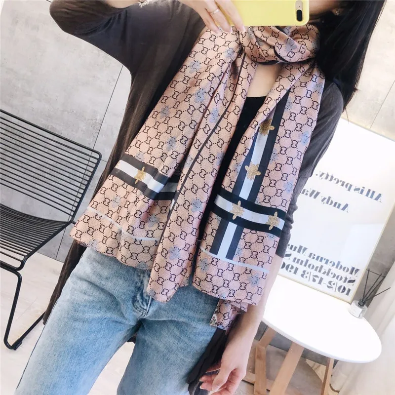 Best selling design big size Honey Bee polyester long Silk scarf silk shawl Scarves