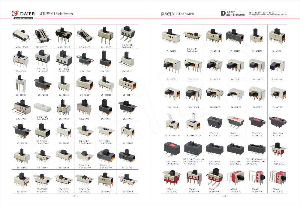 Daier's many series of slide switches give engineers more design flexibility and options when it comes to size, mounting, actuation types, ratings and packages. Whether you develop controllers or consumer goods; headphones or HVAC controls; portable speakers or laptops; audio equipment or alarms, Daier slide switches quickly integrate into your next design.