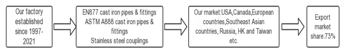 3. Our pipes and fittings can meet EN877 standard and ASTM A888 standard, our couplings are also very popular in foreign markets.