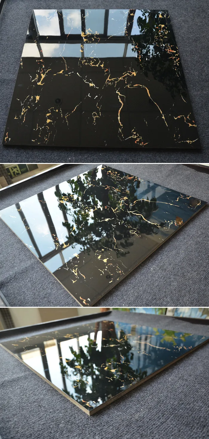 Black with gold interior floor and wall design polished glazed porcelain marble tile texture