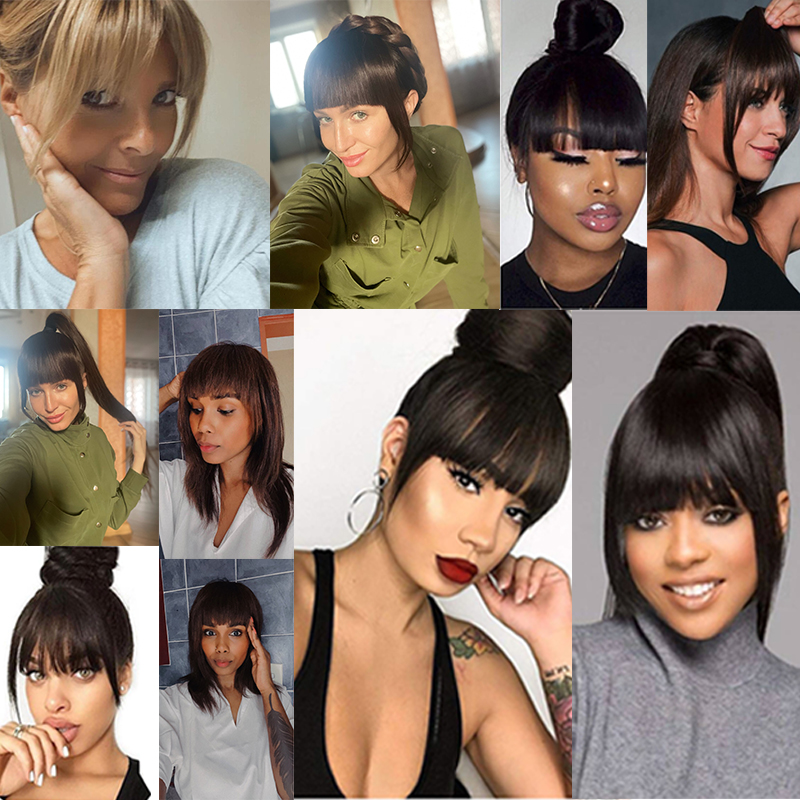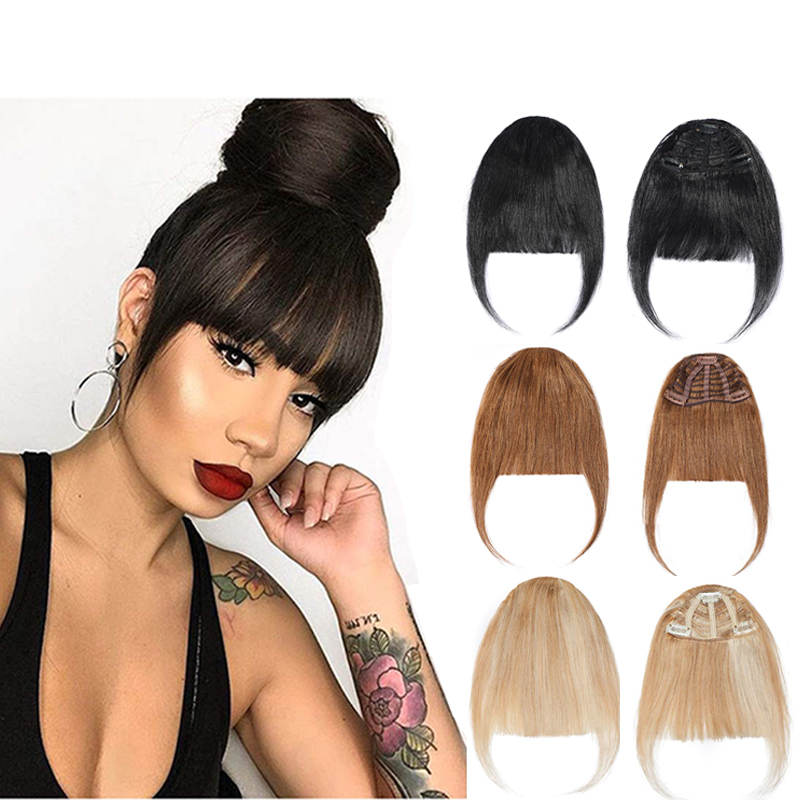 Blunt Cut Natural Bangs, 100% Remy Human Hair Crown Extensions, Real Hair Cut Tassel Barrettes for Women