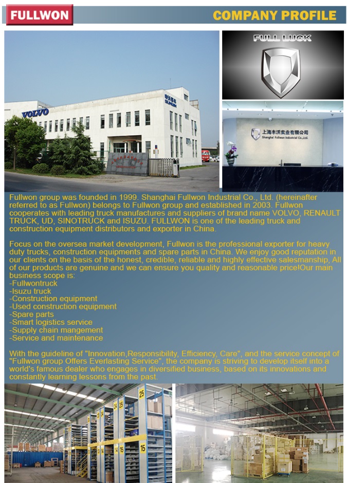 | Fullwon is one of the leading truck dealers in Asia. Professional supplier in the truck business for over 15 years. | Volvo Trucks' super dealer in China, offering a wide range of construction equipment, domestic brands include: | A complete range of spare parts for trucks and construction equipment. Experienced professional spare parts technical support. | ||