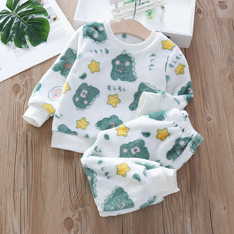 Boys and girls clothes pajamas set thick flannel toddler children warm cartoon pajamas children's home set autumn and winter