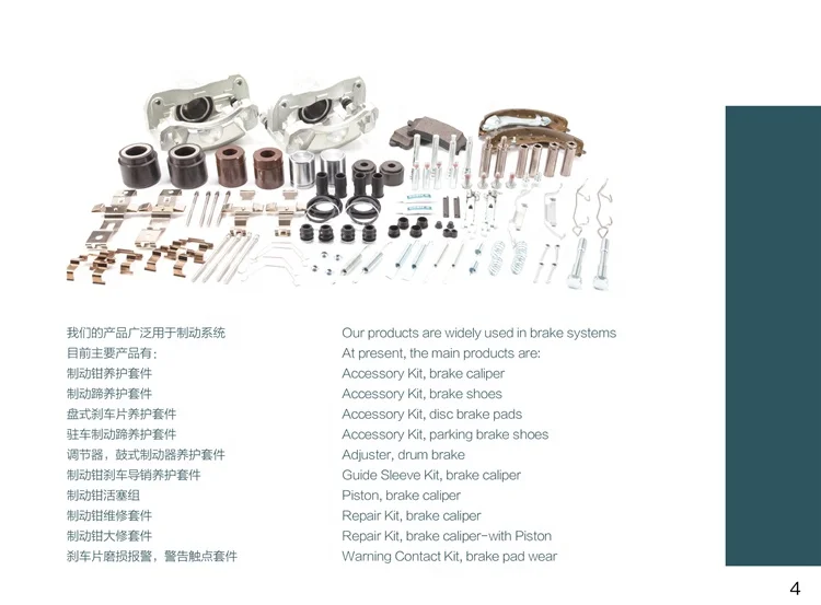 Established in 2015, Jiangsu koen is mainly engaged in the development and assembly of automotive brake repair kits. The products cover all models in the world. The main products include brake caliper pistons, brake caliper repair kits, brake pad repair kits, brake shoe repair kits and other kits. All products implement the original OE standards and adopt a certified quality management system that meets ISO 9001 requirements. Our philosophy is to provide good service to our customers. For this reason, we keep a variety of product inventory so we can deliver products quickly. We can quickly develop products to improve the range of products we offer.