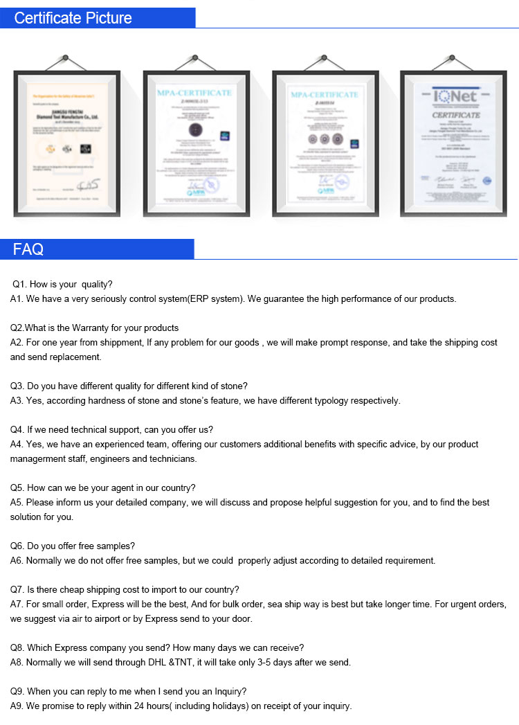 | Blade material: | Diamond segment & 30CrMo alloy steel body | Packaging Details: | Color box, double blister, blister card, white box |