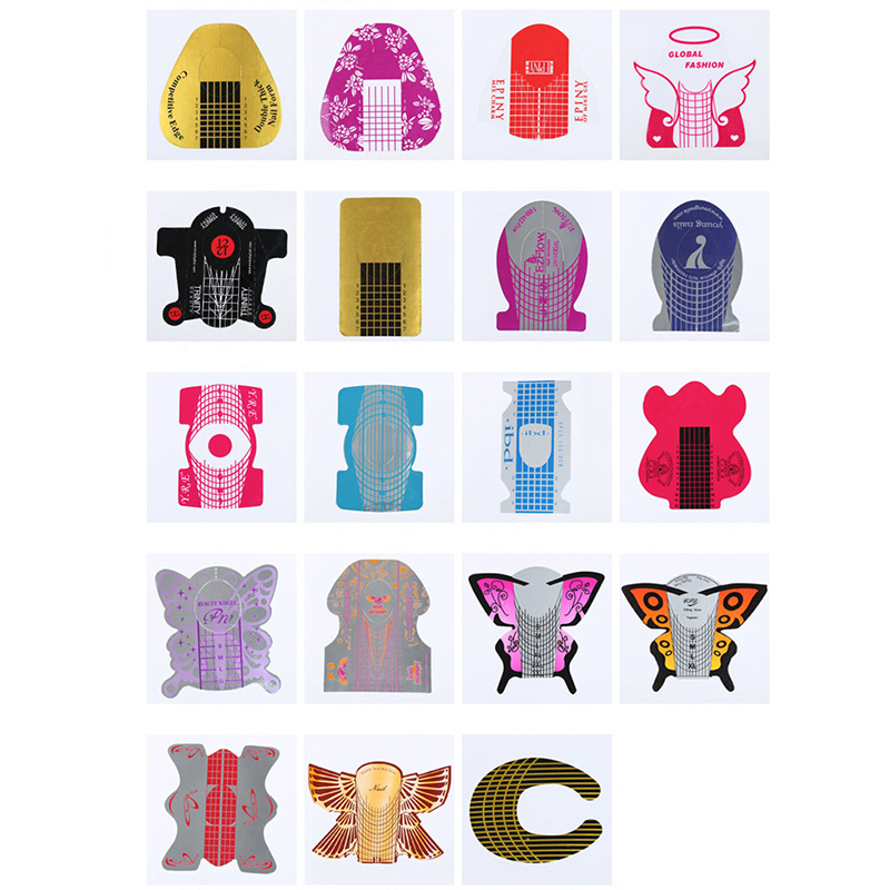 Butterfly Shape 500 Pieces Print No Logo Private Label PVC Reusable Nail Shape Maker Thick Paper Nail Extension Shape
