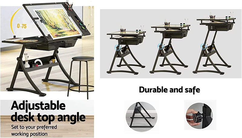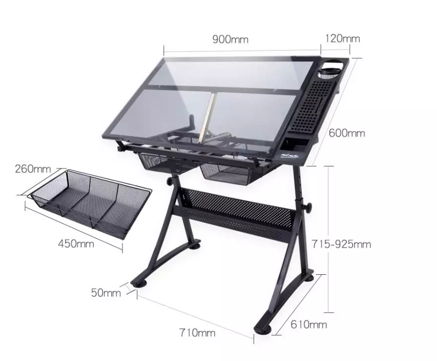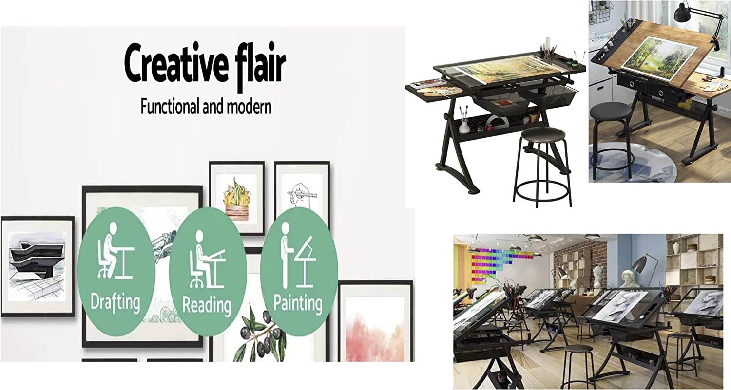 Bview Art Adjustable Height Multi-Functional Art Craft Artists Glass Tilt Table for Painting