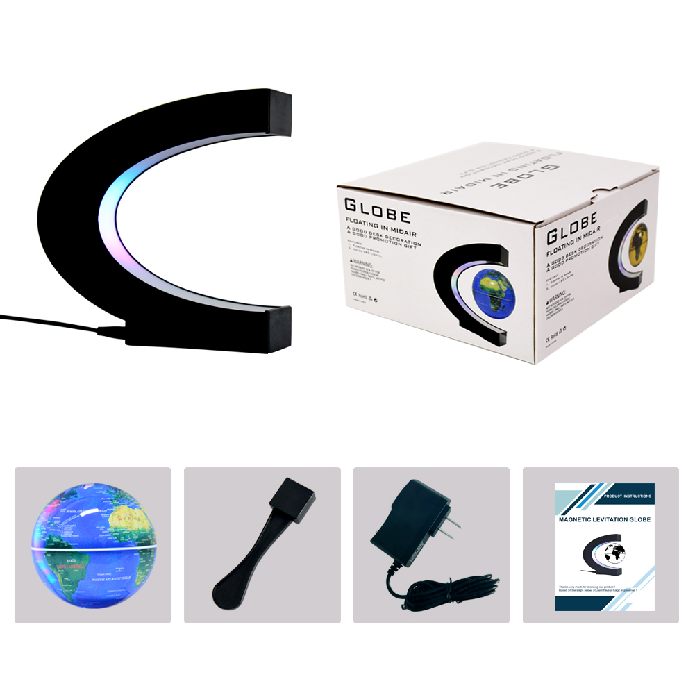 C-shaped floating world globe, anti-gravity flying globe, maglev floating lighting globe