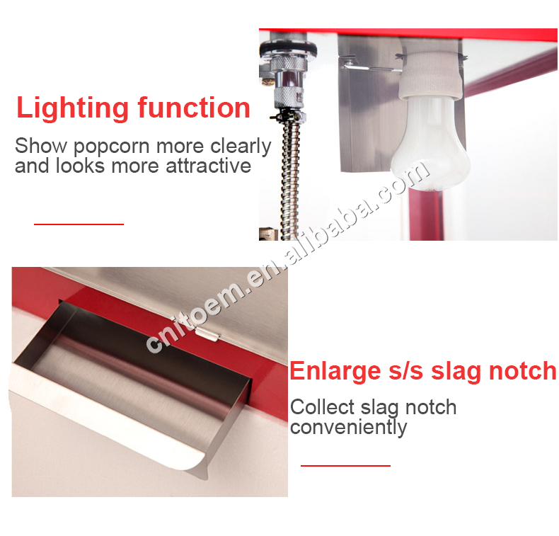 6. Equipped with a light bulb, it can also keep the popcorn warm and crispy. The popcorn becomes more attractive under the lights, and there are more and more customers.