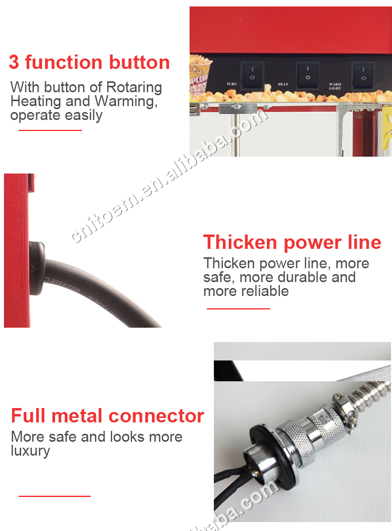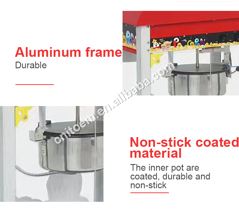 2. The high-quality inner pot is made of food-grade stainless steel and matched with a corresponding mixer to make popcorn making fast and safe.