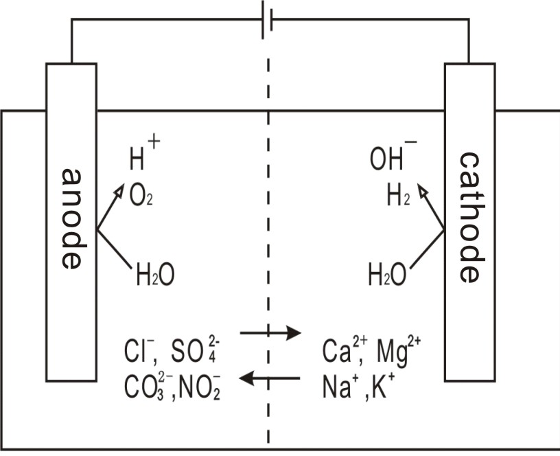 Under the action of the membrane, the water flowing through the cathode chamber increases the OH concentration and the pH value. While the H+ in the anode compartment increases, the pH of the water decreases.