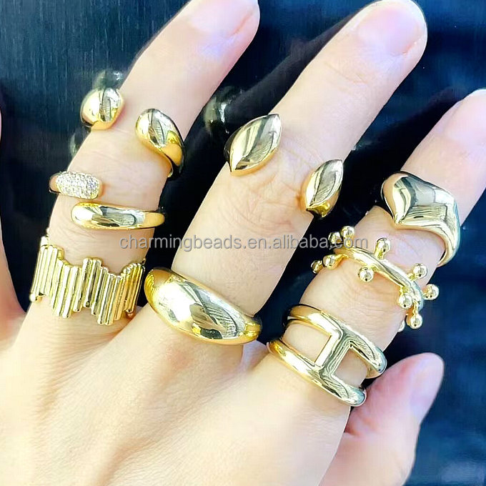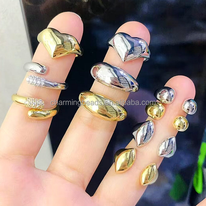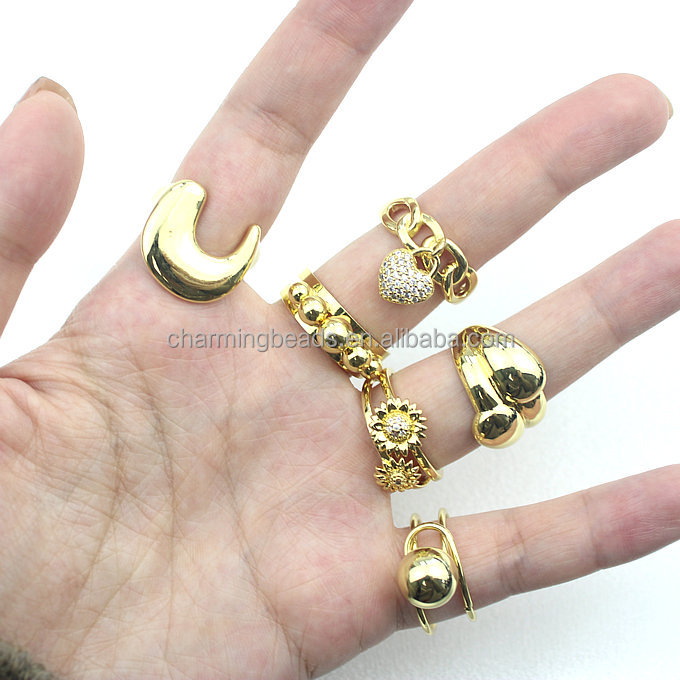 CH-LHR01779 Fashion gold-plated heart-shaped ring high quality gold-plated simple ring gold-plated adjustable wholesale silver-plated ball ring