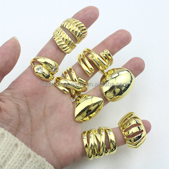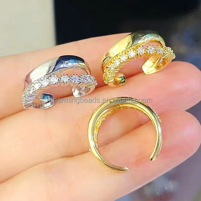 CH-LHR01822 Fashion gold-plated cubic zirconia ring high quality gold-plated simple ring gold-plated adjustable wholesale silver-plated ring