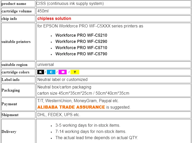 | Bulk Packaging: | Yes; | Model Number: | for Epson WF-C5210; |