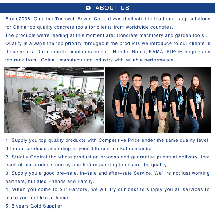 Diesel engine: Cape 178F/186F, Gasoline engine: Lifan 168F/177F, Honda: GX270/390 Motor: 2.2kw, 3kw |