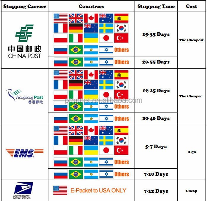 1. We can ship all over the world by DHL, UPS, FedEx, EMS CPAM ePacket. The packaging is very safe and sturdy.