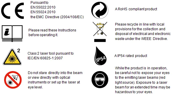 | Lower Beam Accuracy: | 4.5mm/15m | Laser class: | Class II |