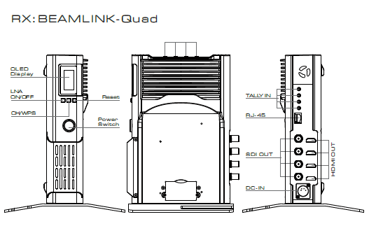 The Beamlink Quad is a wireless video kit that supports up to 4 cameras simultaneously and has ports like HDMI, SDI, tally and audio jacks.
