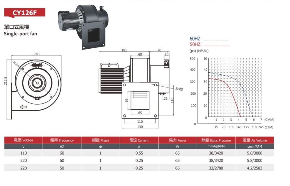 CY126F 65W Low Noise High Quality New Centrifugal Heater Fan